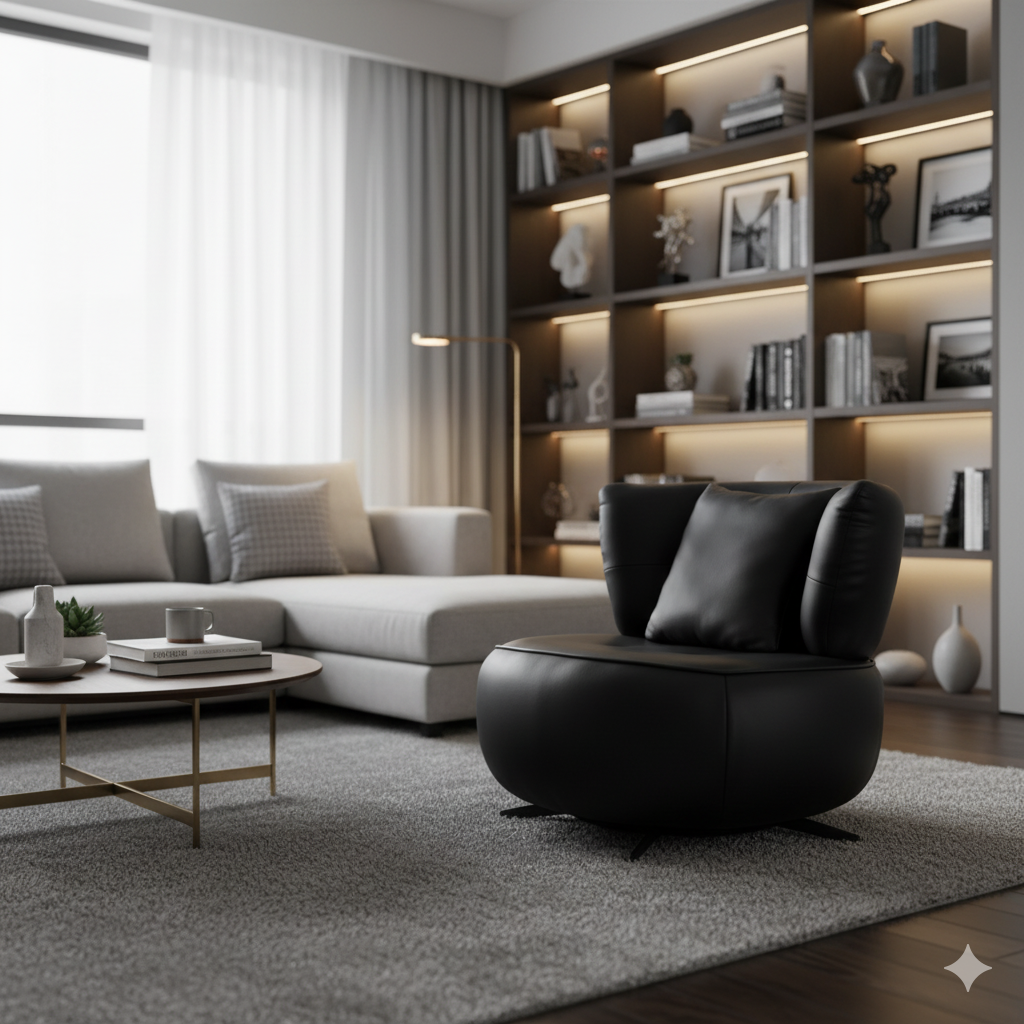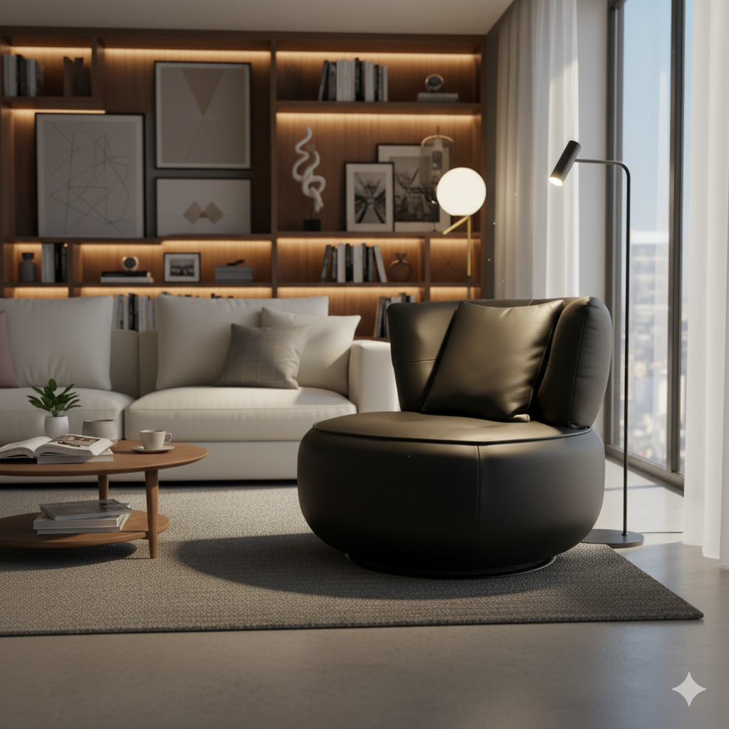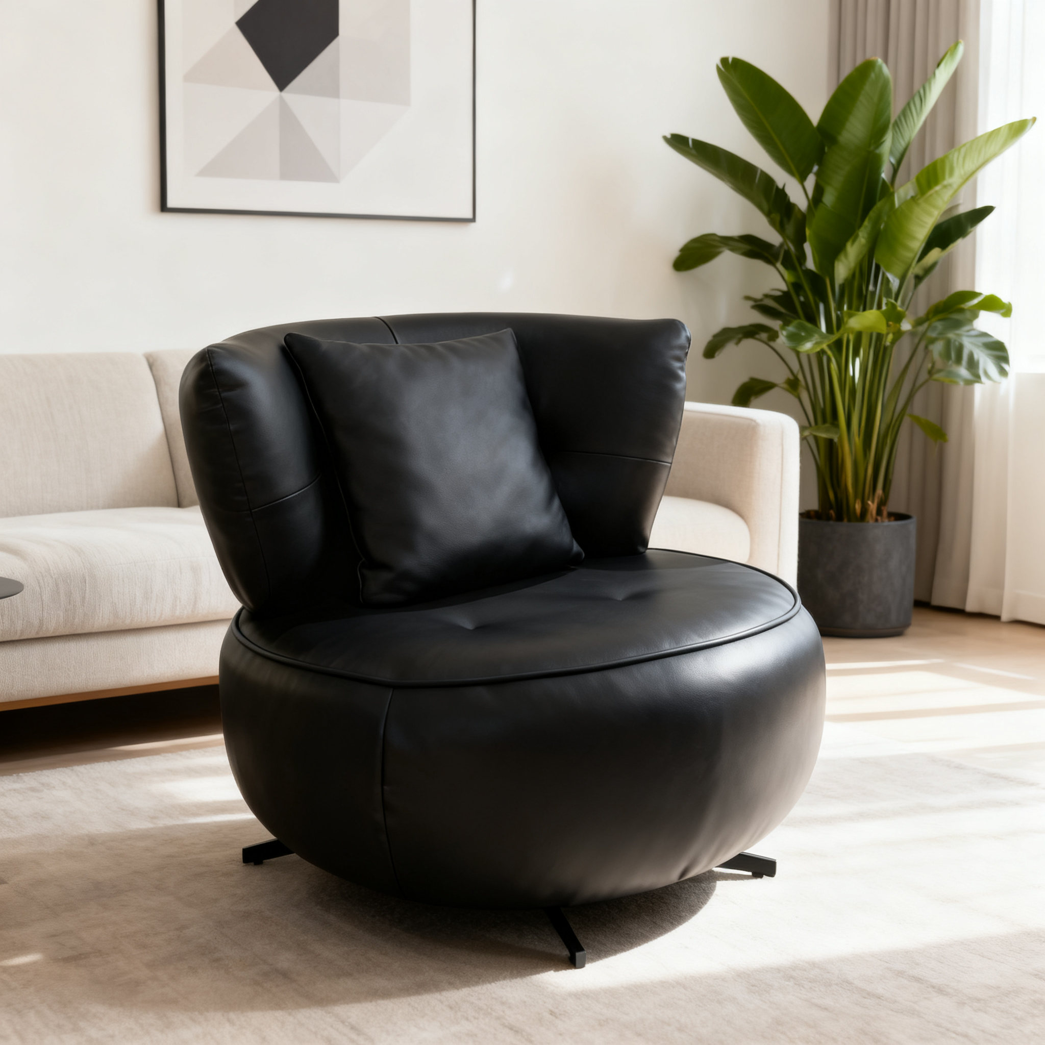 Armchair Black Leather LKX010ACSY | LEUKHOME