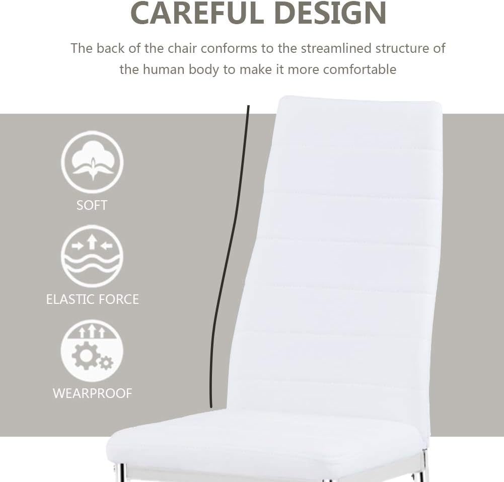 Sturdy Material and Suitable Size:The dining table is made of clear tempered glass and chrome plated legs, which are sturdy and durable while easy to clean. The 4 high back upholstered dining chairs are ergonomically designed to provide you with the comfortable support, the chair top is made of PVC and the upholstered back is sponge filled to provide you with the comfortable support. The overall size of the dining table is 90 x 90 x 75cm and the chairs measure 42 x 54 x 96cm