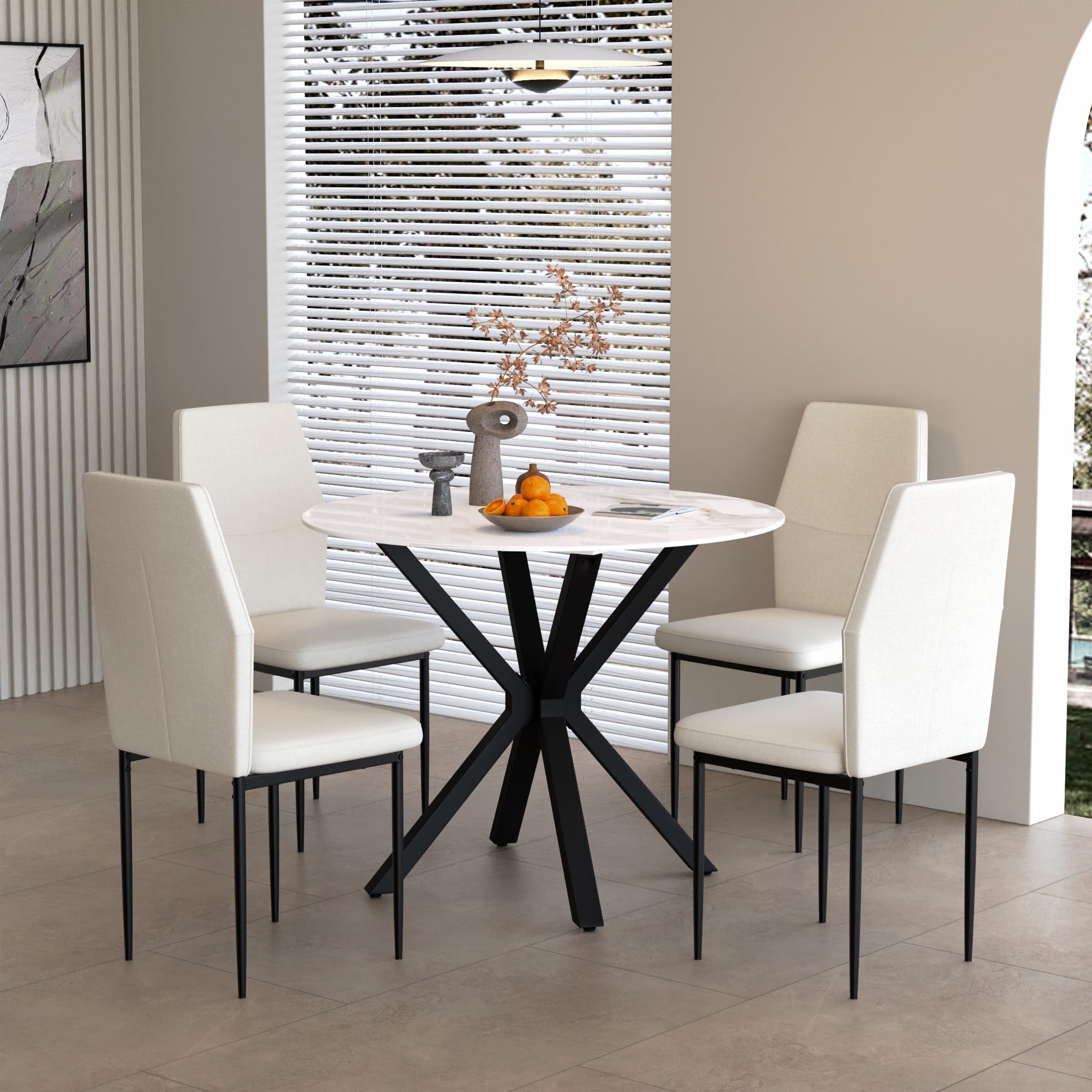 Round Dining Table,35.5" Modern Sintered Stone Kitchen Table with Black Metal Legs for Dining Room Home Furniture CA | LEUKHOUSE